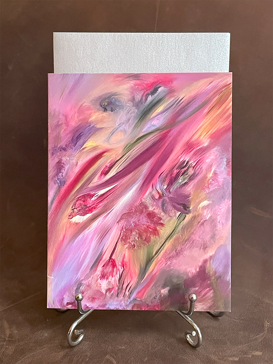 • Card is blank on writing side with the following text in 9pt font opposite side of painting (lower center):